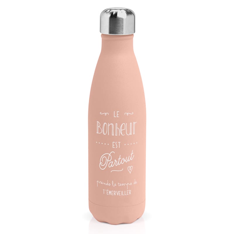 Bouteille Isotherme 0.5 L Le bonheur est partout Rose