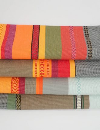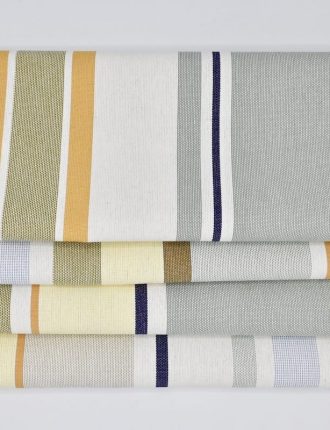 les 4 serviettes sont confectionnées sur une largeur du tissu, qui est composé de rayures au rythme irrégulier et asymétrique